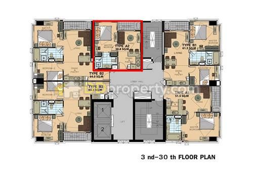 ขาย 1 ห้องนอน พื้นที่ 38.8 ตร.ม. แบบ A2 ชั้น 24 เสร็จพร้อมอยู่กลางปี 2554
